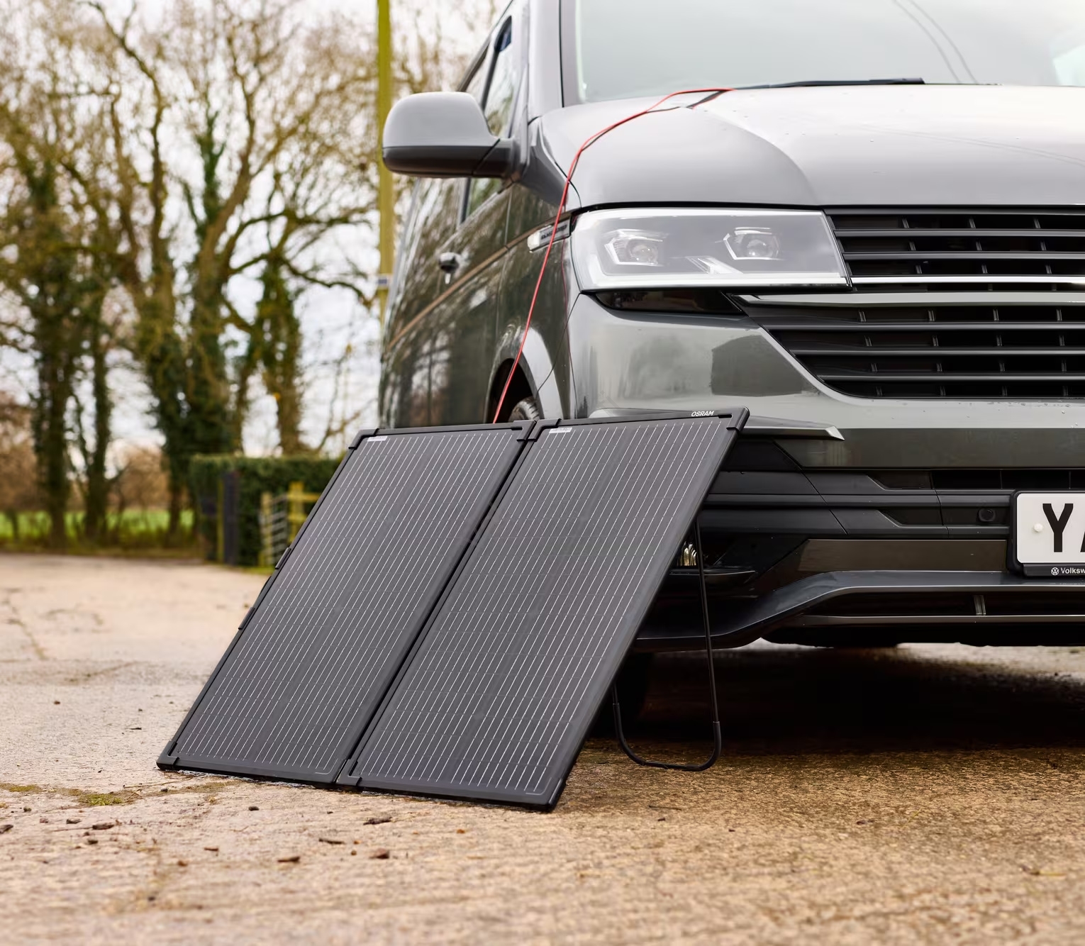 • Se on varustettu monokiteisillä aurinkopaneeleilla kestävässä alumiinikehyksessä ja tuottaa jopa 100 W aurinkoenergiaa, mikä sopii asuntovaunuille, matkailuautoille ja ulkokäyttöön.