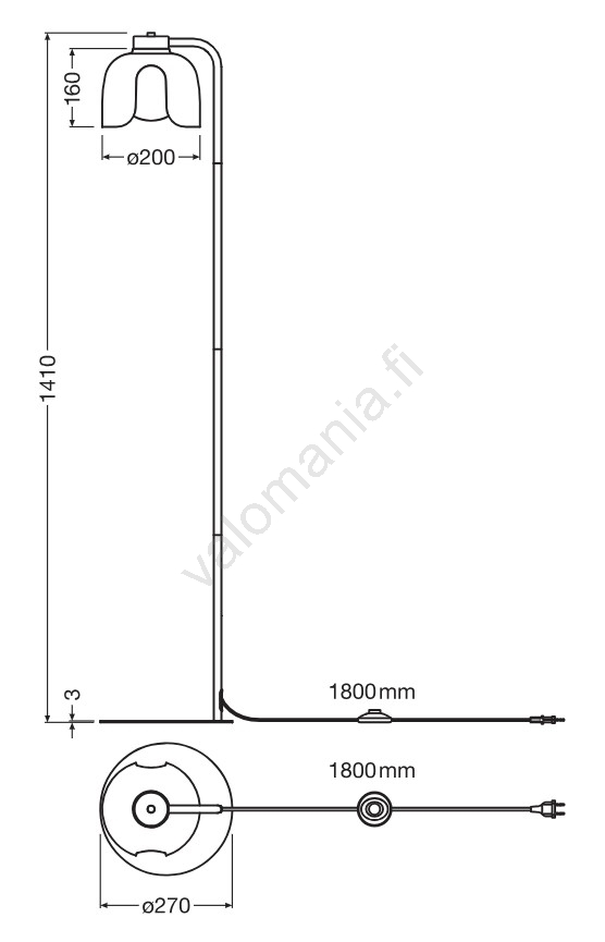 Tämän tuotteen virtajohdon pituus on yleensä 1,8–2,5 m. Tarkka pituus voi vaihdella valmistajan mukaan — saatavuuden mukaan se on aina mainittu tuotekuvauksessa.