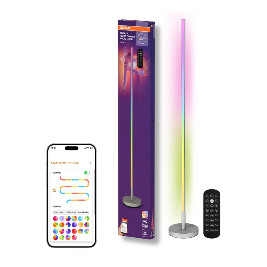 Osram - SMART+ MAGIC himmennettävä LED RGBW lattiavalaisin, 11,5 W, 230 V, hopea, Wi‑Fi + kaukosäädi