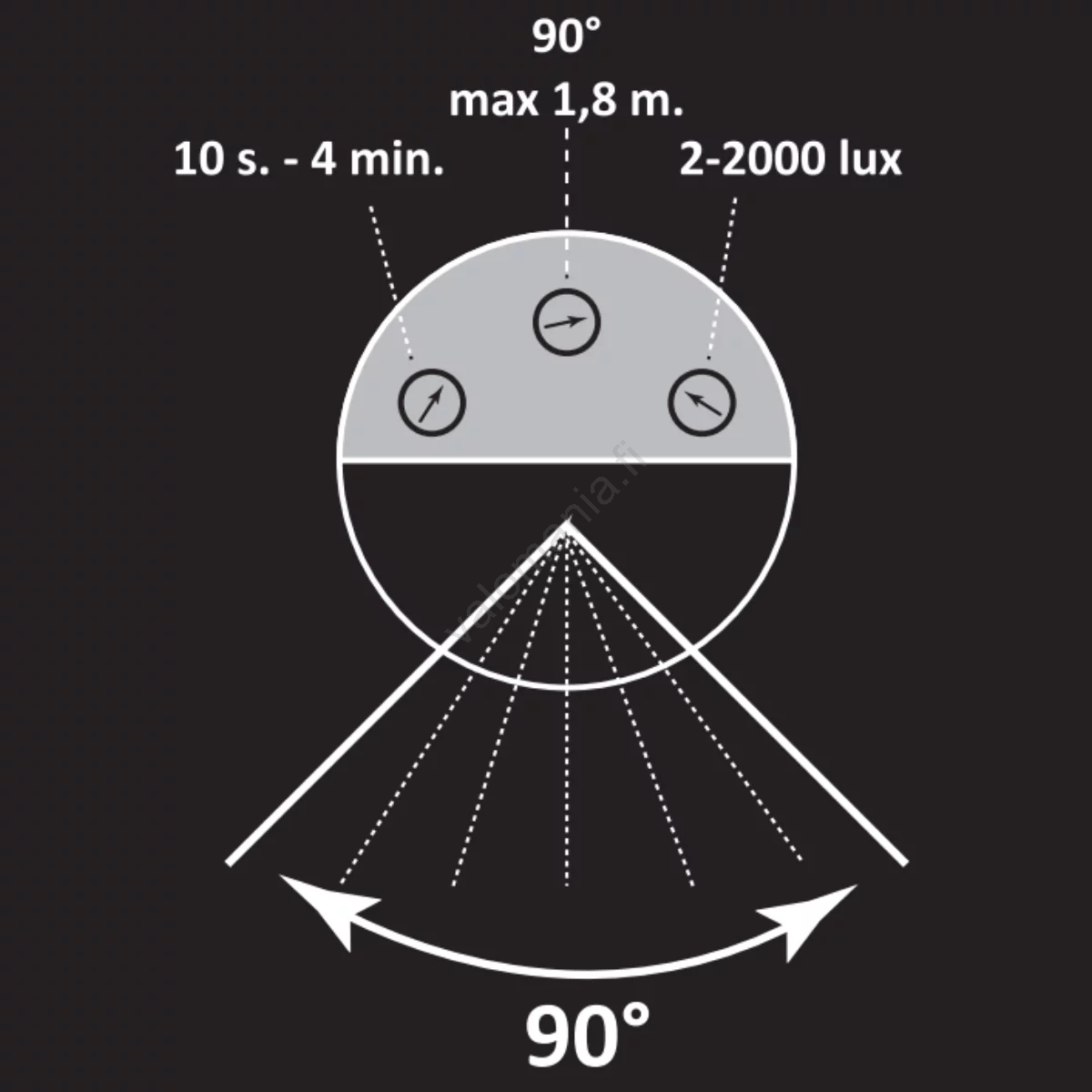 • Säädettävä valaistusaika: 10 s - 4 min.