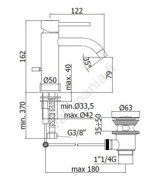 • Tasoasennettava yksikahvainen pesuallashana tyhjennysventtiilillä.