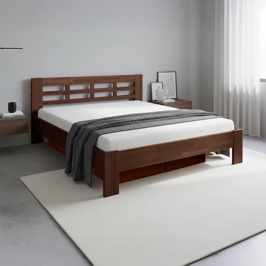 Parivuode massiivipuusta säilytystilalla ANGELA 180x200 cm tummassa pähkinässä