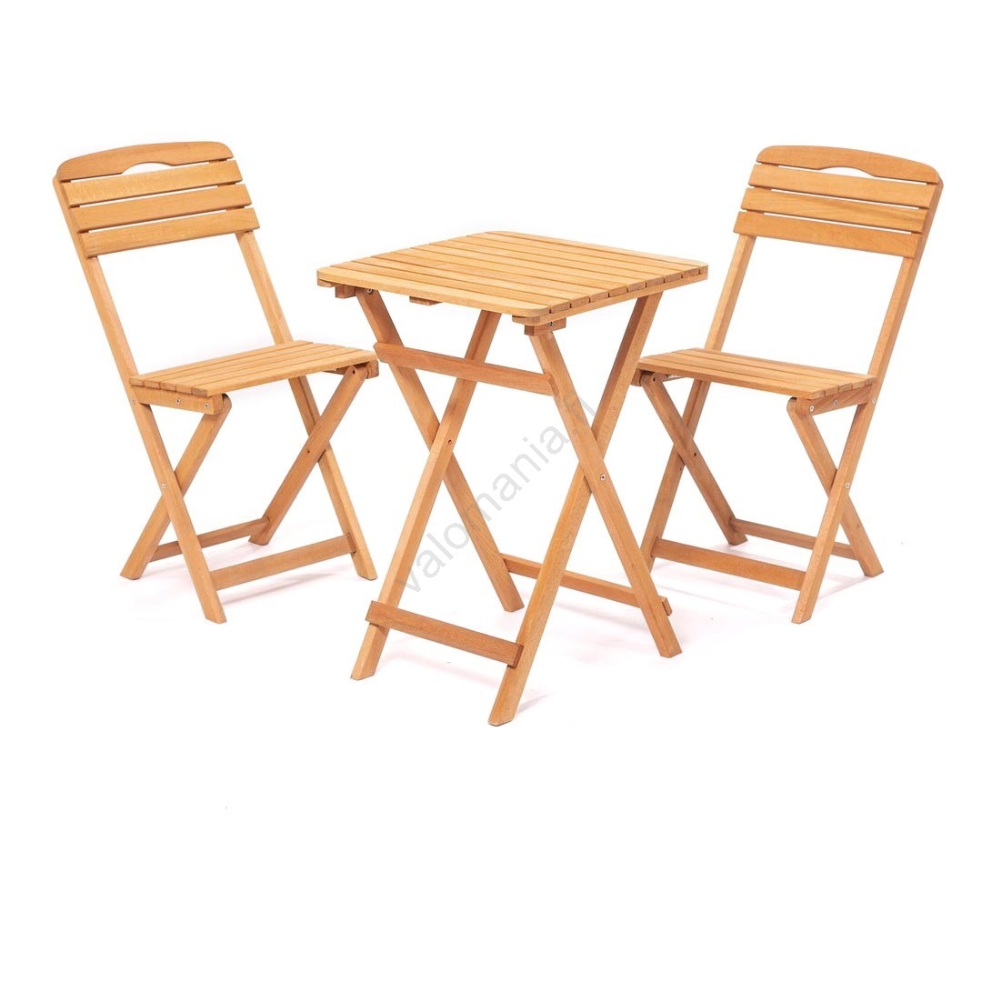 • Balkonisetti, jossa on kaksi tuolia ja pöytä.