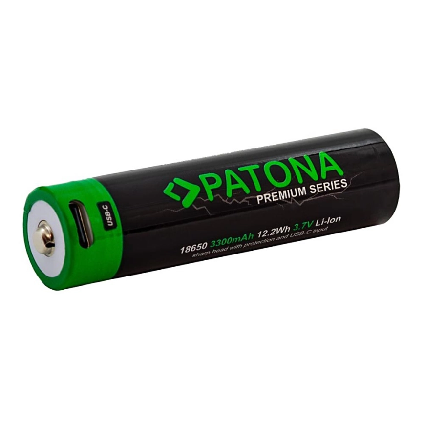 PATONA - Akku 18650 Li-lon 3350mAh PREMIUM 3,7V kanssa USB-C lataus