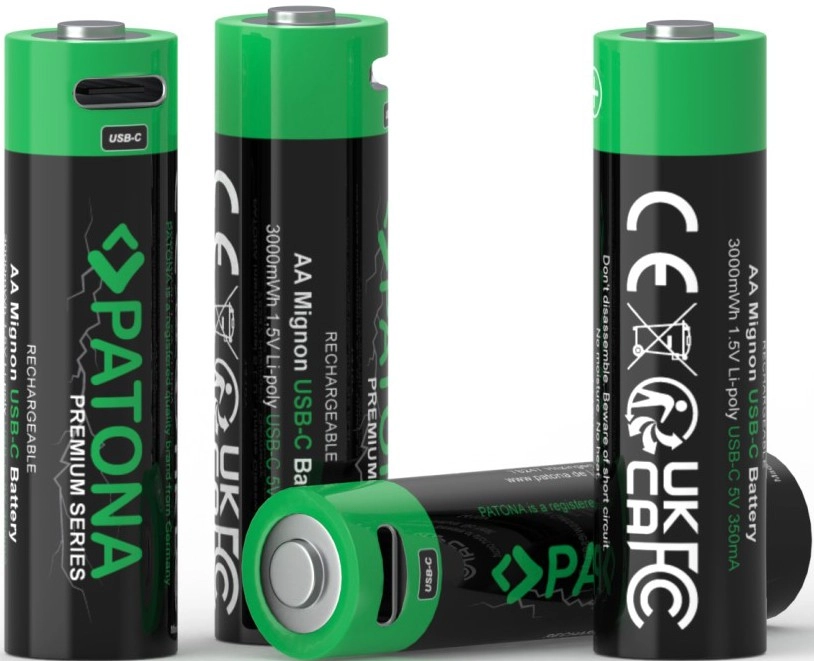 PATONA - SETTI 4x Akku AA/LR6 Li-Pol 2000mAh 1,5Vs kanssa USB-C lataus | Valomania