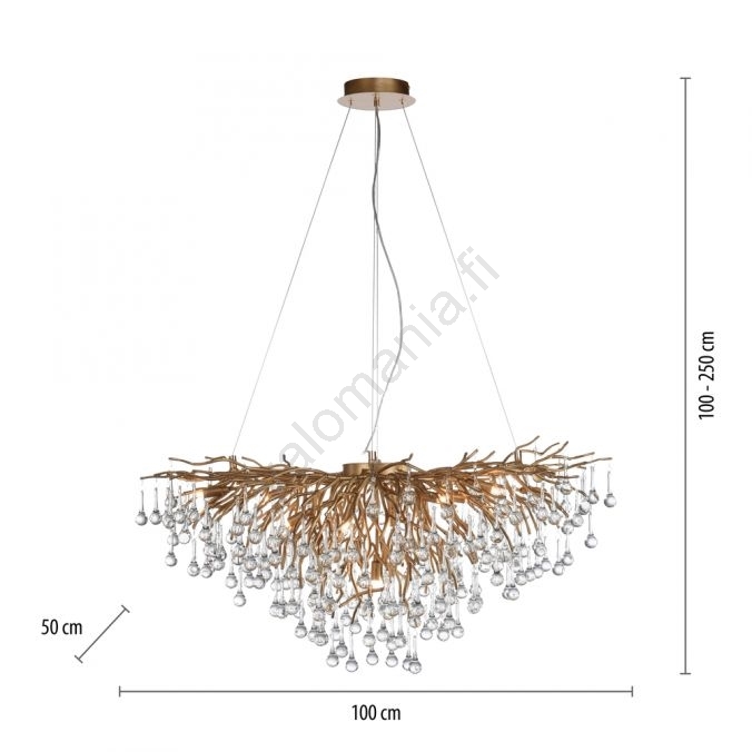Paul Neuhaus 2192-11 - Kattokruunu johdossa ICICLE 10xG9/40W/230V 50x100 cm messinki | Valomania