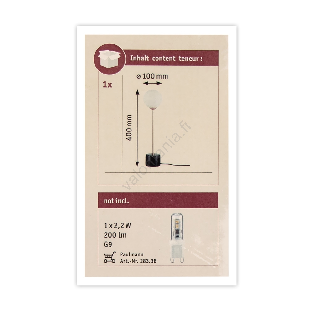 Paulmann 79662 - 1xG9/10W Pöytälamppu NEORDIC MOA 230V | Valomania