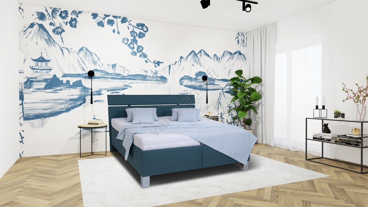• Verhoiltu sänky patjalla ja säilytystilalla ALIS 160x200 cm petroolinsininen