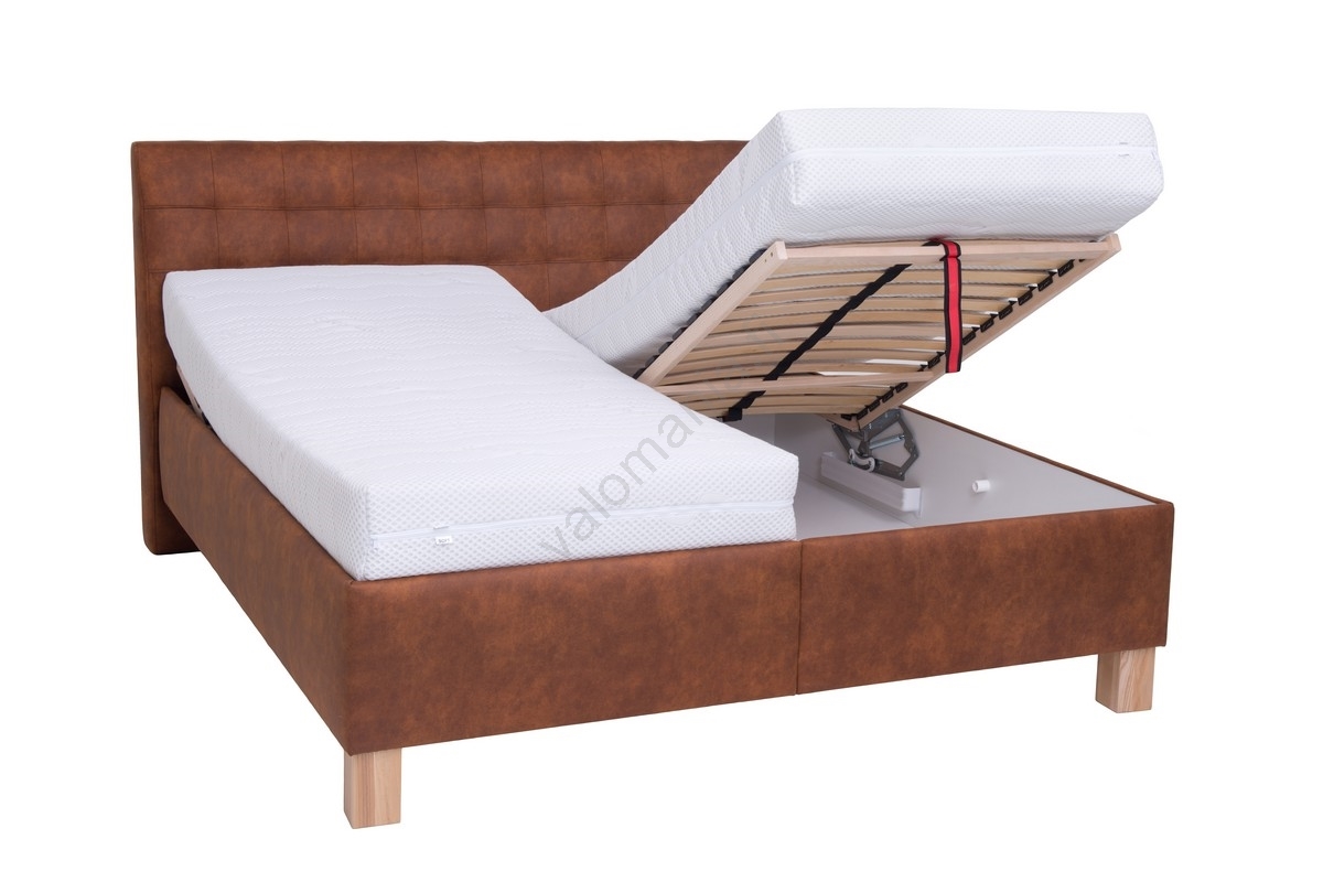 Verhoiltu sänky VIOLET 160x200 cm patjalla ja säilytystilalla, konjakinruskea | Valomania