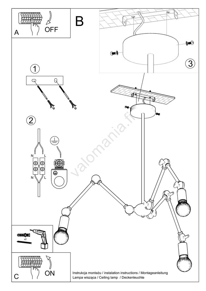 Riippukattokruunu STARK 3xE27/60W/230V | Valomania