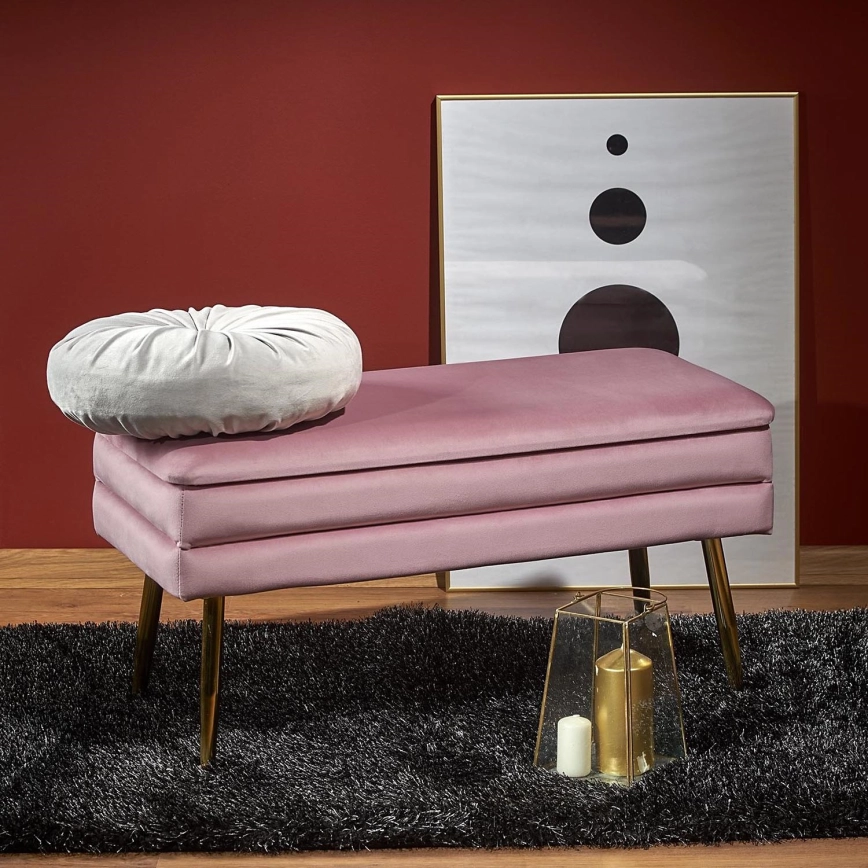 • Penkki jossa on säilytystilaa VELVA 37x78 cm vaaleanpunainen/kulta