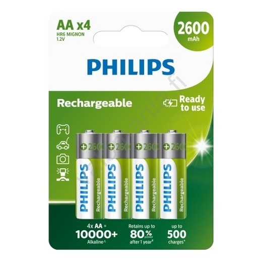 Philips R6B4B260/10 - 4 kpl AA NiMH ladattavat paristot 1,2V/2600 mAh | Valomania