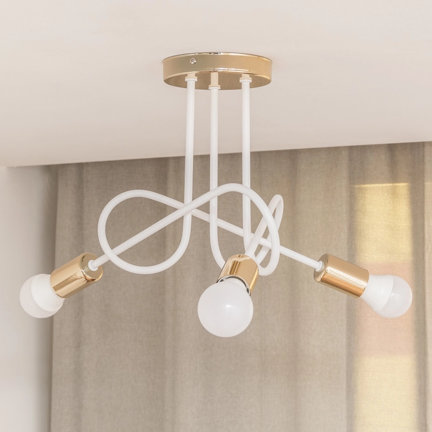 Pinnalle asennettava kattokruunu OXFORD 3xE27/15W/230V, kultainen/valkoinen | Valomania