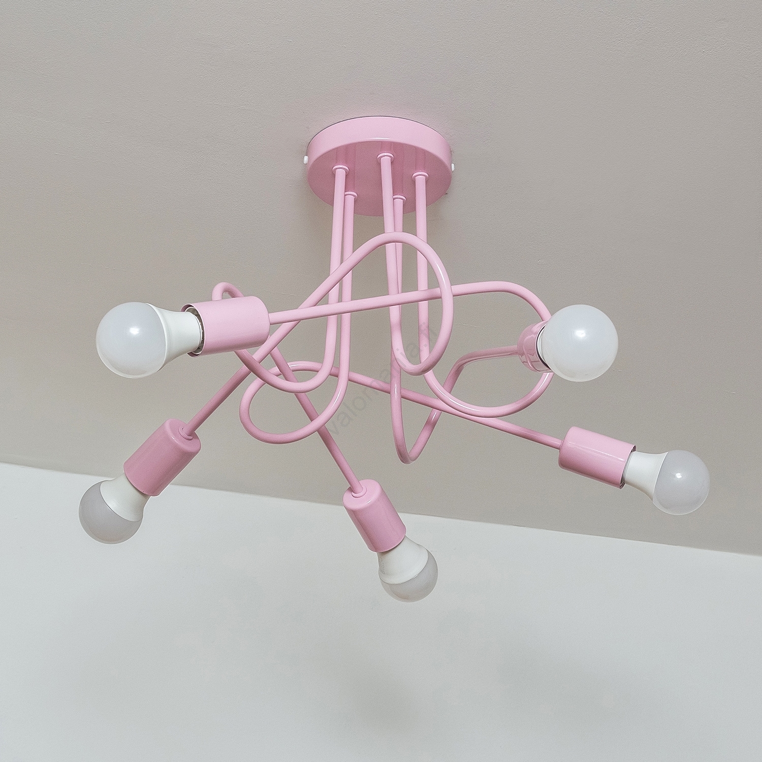 Pinnalle asennettava OXFORD-kattokruunu 5xE27/15W/230V vaaleanpunainen | Valomania