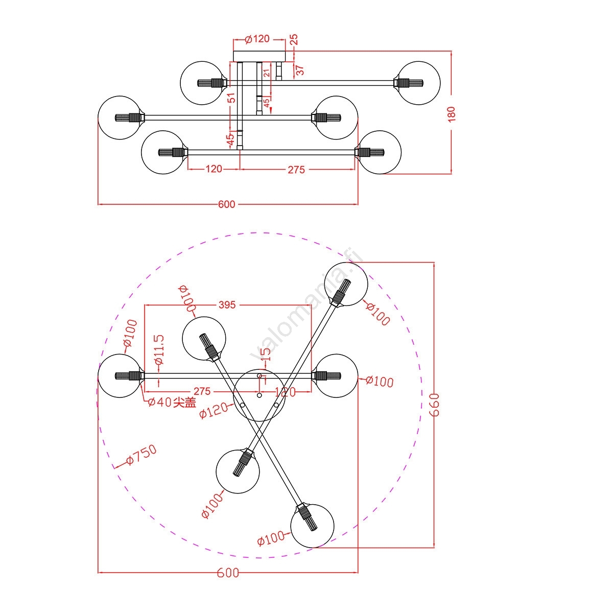 Pinta-asenteinen kattovalaisin DORADO 6xG9/28W/230V, kultainen merkitsee kaunista ja toimivaa muotoilua.  Valoon sopii polttimo, jossa on G9-kanta. Täältä voit ostaa myös muita lamppuja edulliseen hintaan. Mielenkiintoinen lisä kotiisi.