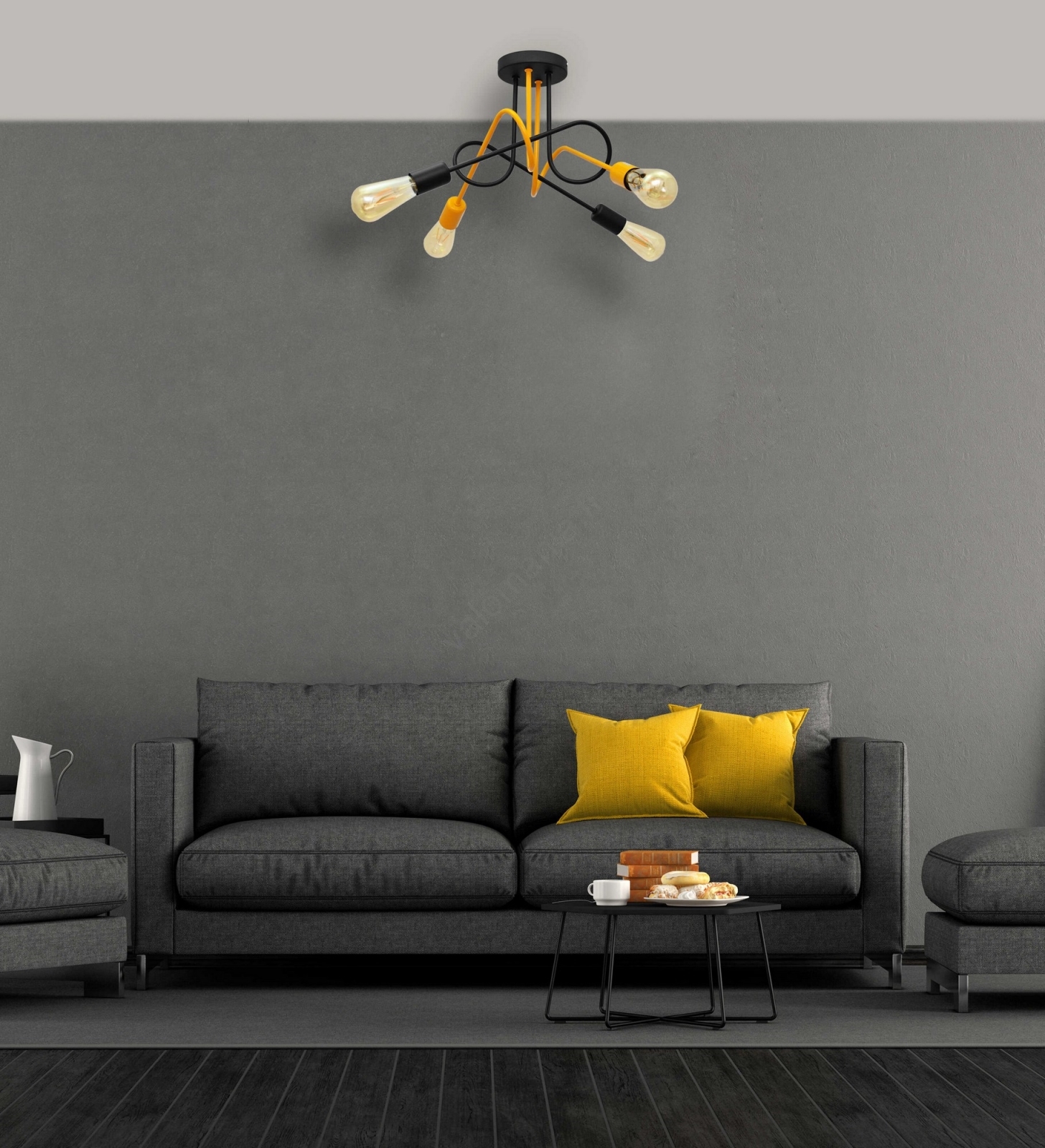 Pinta-asetettava kattokruunu OXFORD 4xE27/15W/230V musta/keltainen | Valomania