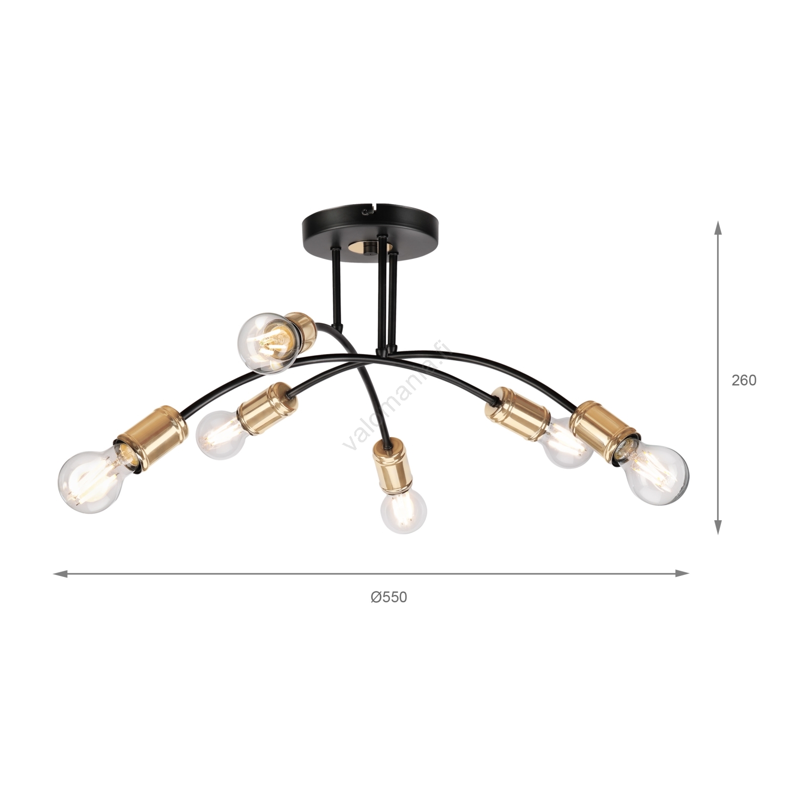Pintakiinnitteinen kattokruunu ANYA 6xE27/15W/230V musta/kulta merkitsee kaunista ja toimivaa muotoilua.  Valoon sopii polttimo, jossa on E27-kanta. Täältä voit ostaa myös muita lamppuja edulliseen hintaan. Mielenkiintoinen lisä kotiisi.