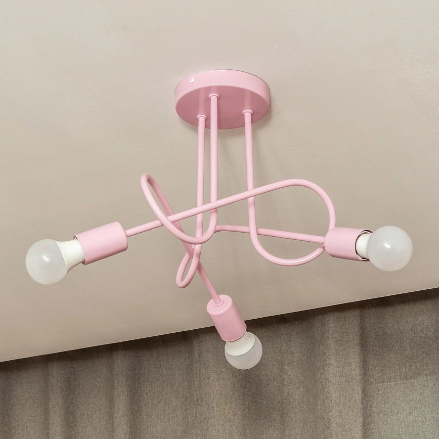 Pintakiinnitteinen kattokruunu OXFORD 3xE27/15W/230V, vaaleanpunainen