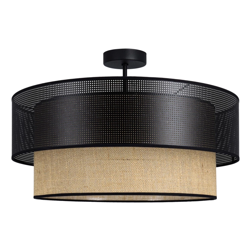 Pinta-asennettava kattovalaisin BORHO 1xE27/60W/230V, halkaisija 50 cm, musta/juutti