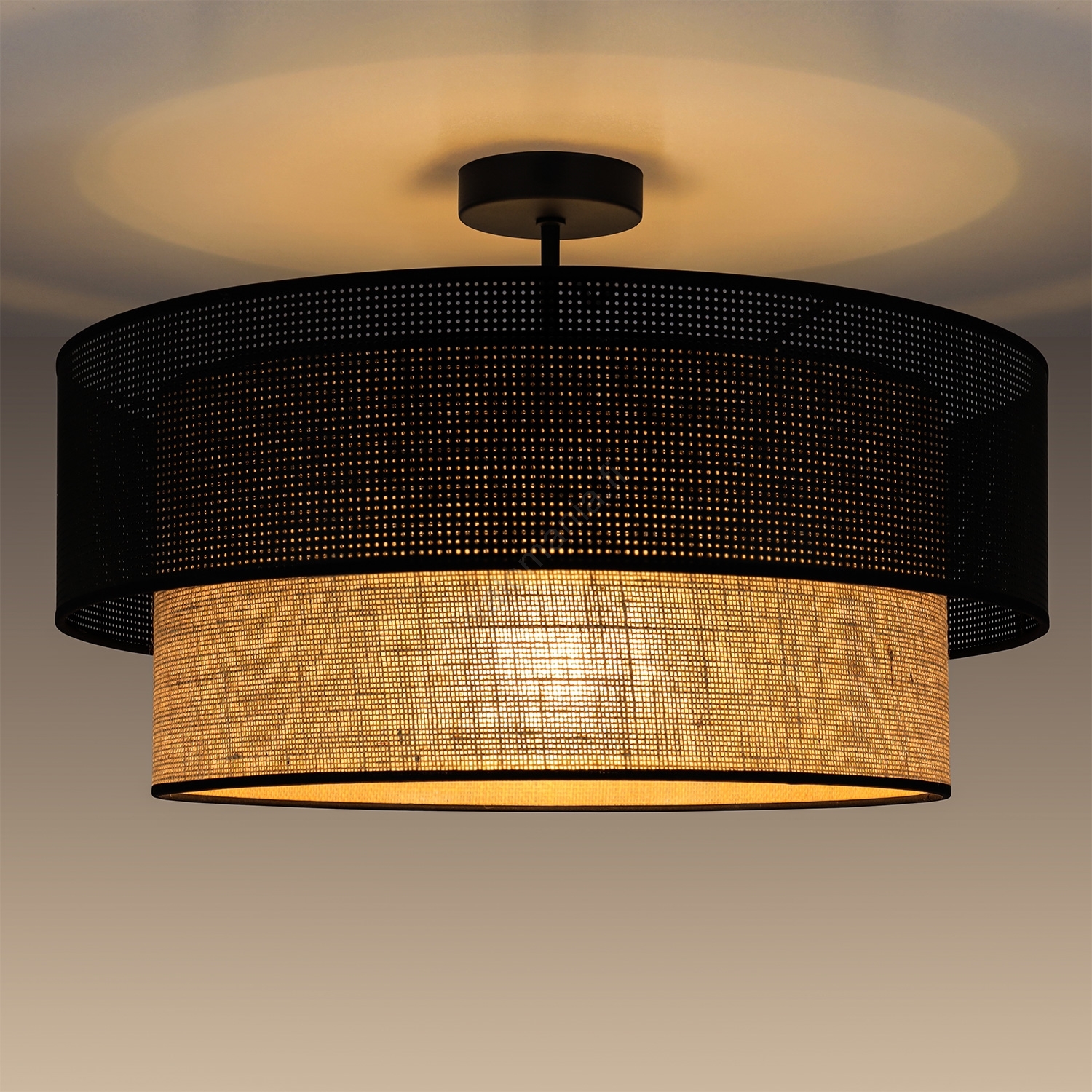 Pinta-asennettava kattovalaisin BORHO 1xE27/60W/230V, halkaisija 50 cm, musta/juutti | Valomania