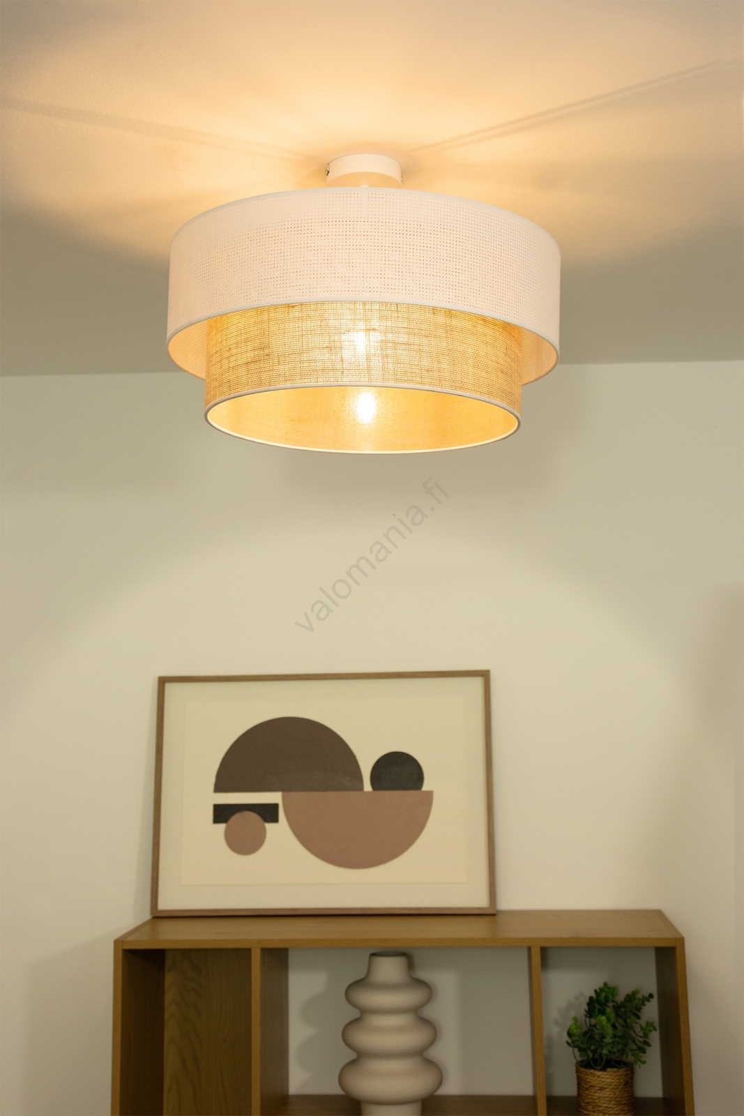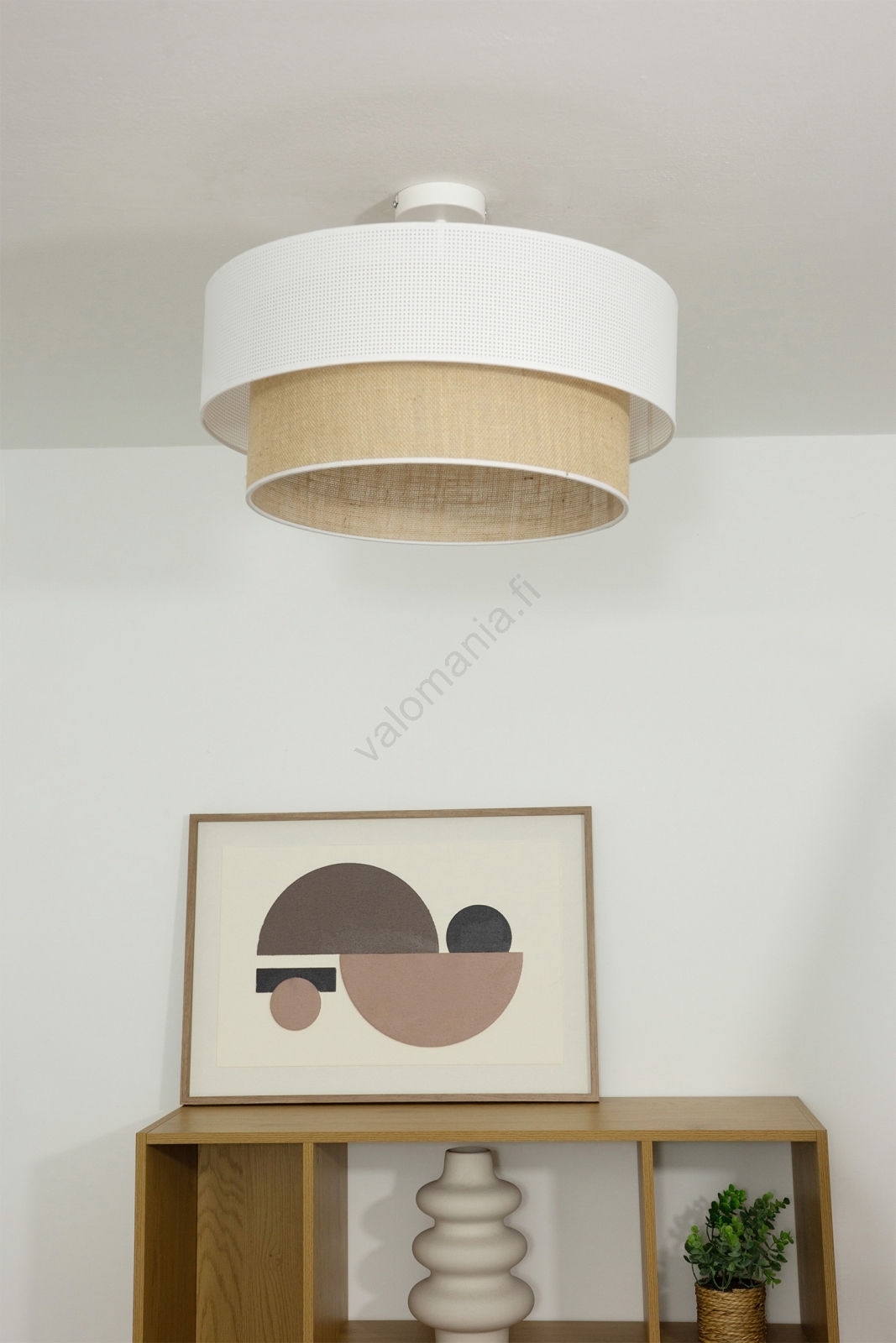 Pintakiinnitteinen kattovalaisin BORHO 1xE27/60W/230V Ø 50 cm valkoinen/juutti | Valomania