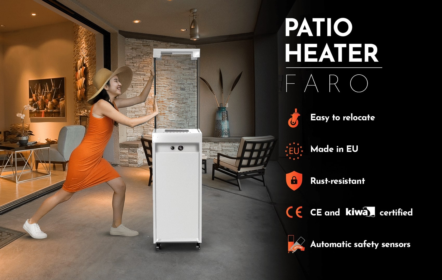 Planika Faro GAS - Ulkotila kaasu takka 142x36 cm 8kW valkoinen + suojus | Valomania