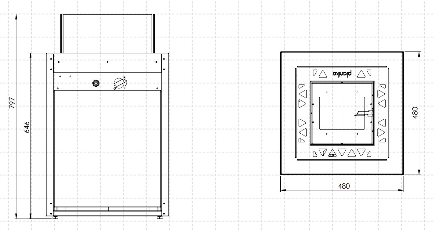 Planika Square GAS - Ulkoinen kaasukamiina 79,7x48 cm 10 kW | Valomania