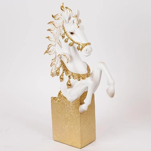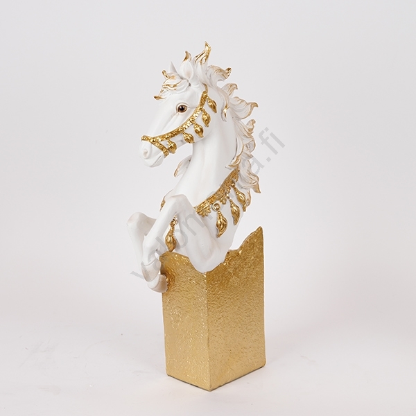 • Tyylikäs patsas, joka esittää pystyyn nousevan hevosen päätä ja osaa vartalosta.