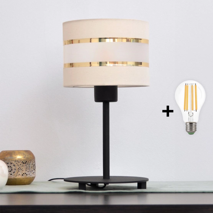 LED Pöytävalaisin HELEN 1xE27/15W/230V kerma/musta/kultainen