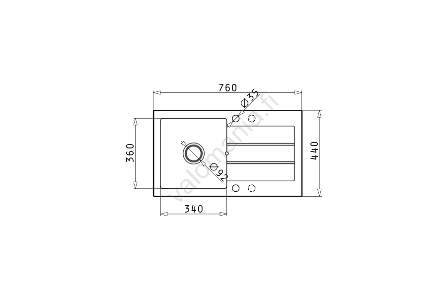 • Kaksipuolinen allas – altaan kuppi voidaan asentaa vasemmalle tai oikealle.