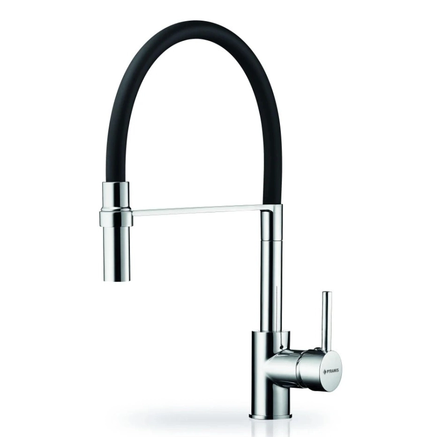 Pyramis 90939801 - Keittiöhana joustavalla suihkuvarrella SERINA kromi/musta | Valomania