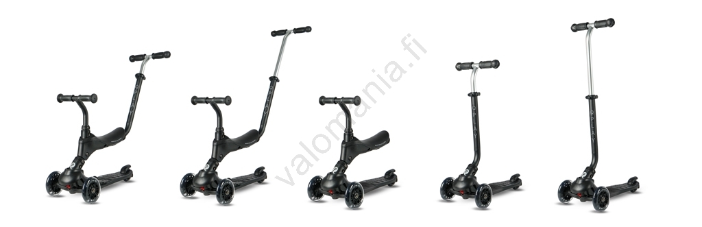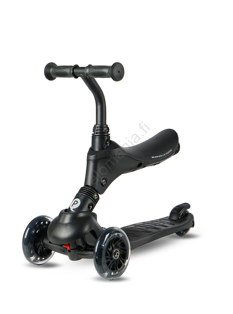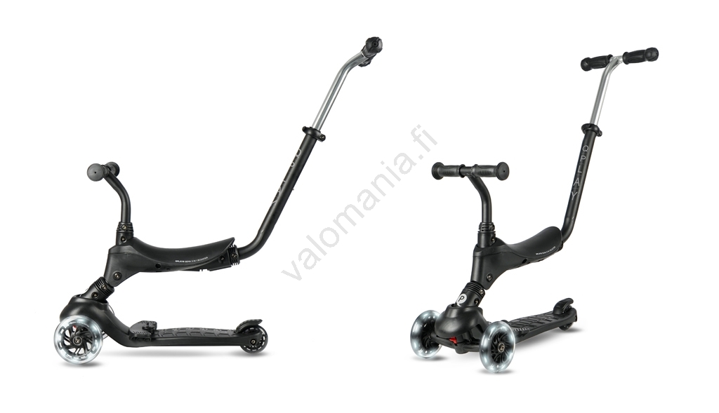 QPlay - Lasten potkulauta LED-valaistetuilla renkailla 5-in-1 SEMA PRO musta | Valomania