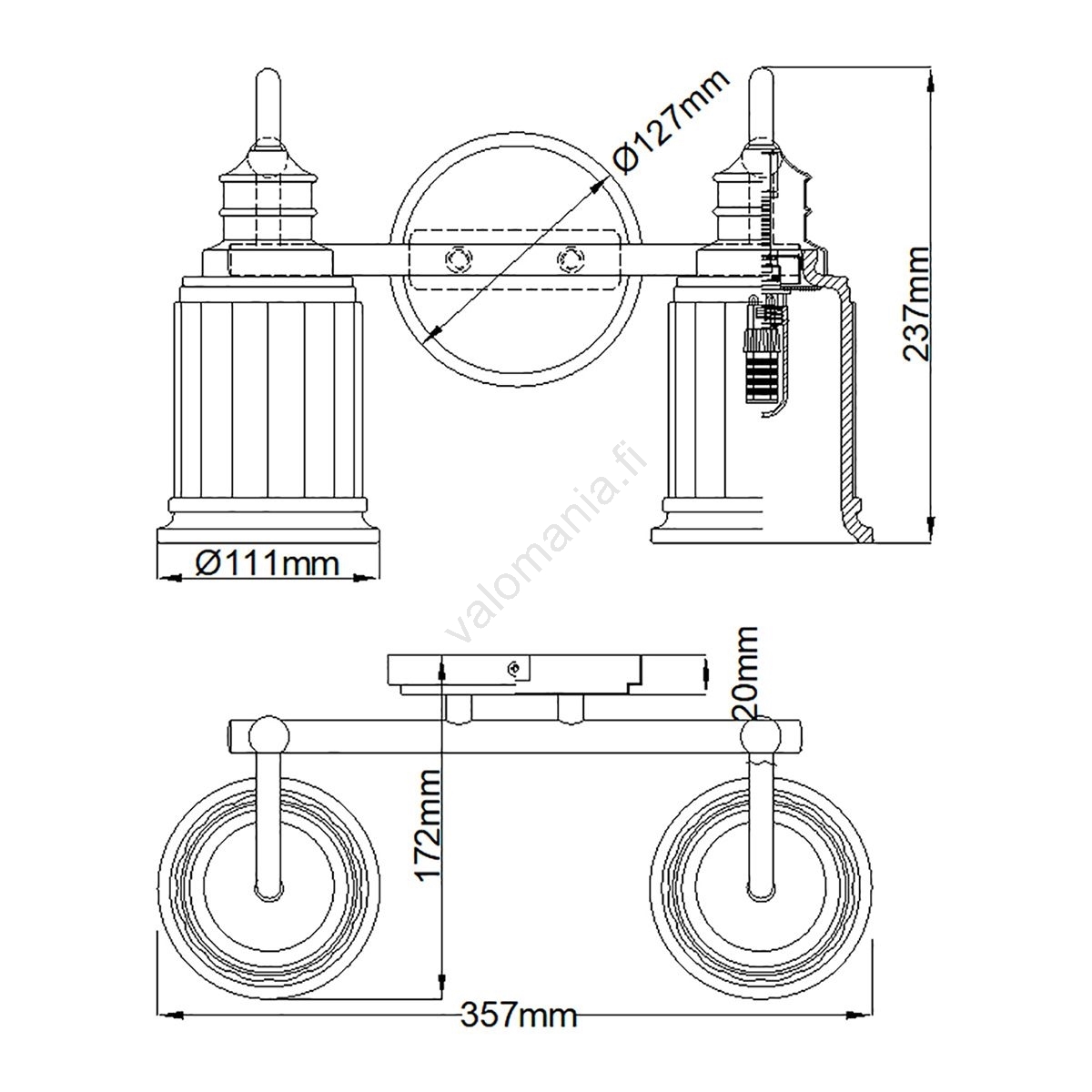 Quoizel QZ-SWELL2-PC-BATH-LED Kylpyhuoneen seinävalaisin SWELL 2xG9/3W/230V IP44 kromi | Valomania