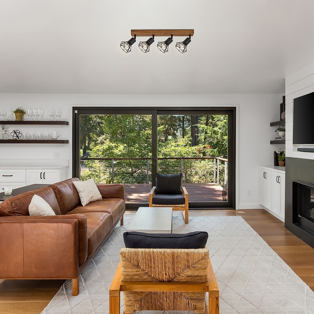 Zeus-nelikärkinen kohdevalaisin teollisella tyylillä sopii eri huoneisiin asunnossasi: voit asentaa sen olohuoneeseen, ruokailutilaan, keittiöön tai makuuhuoneeseen. Metallista ja puusta valmistettu valaisin kiinnitetään seinään pitkänomaisen, tammesta valmistetun koristeellisen neliön muotoisen jalustan avulla. Metalliset ritilävarjostimet, joilla on tunnusomainen muoto, ovat mattamustia. Zeus-valaisimeen sopii neljä enintään 40 W:n tehoista lamppua. Kannatintyyppi on E14. Makuusi ja asennuspaikkaasi sopien voit valita valonlähteen lämpimän tai luonnollisen valkoisen värisenä. Valaisimen joustavien päätensä ansiosta tämä malli valaisee tehokkaasti koko huoneen. Zeus-kohdevalaisimen mitat neljällä lampulla ovat: leveys 665 mm, korkeus 150 mm, etäisyys seinästä 150 mm. Tämä malli toimitetaan ilman valonlähteitä.