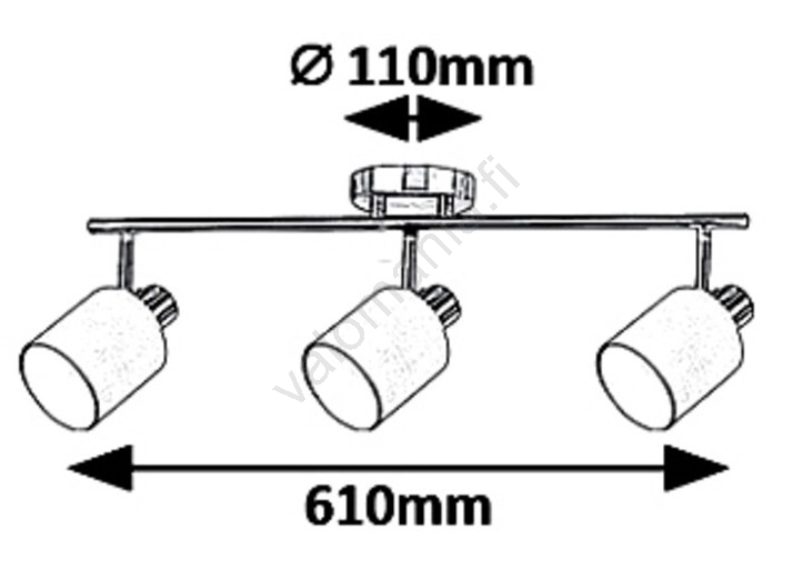 Kolmivalaisin Natina erottuu modernilla, hillityllä muotoilullaan ja väreillään. Metallinen kattovalaisin on valmistettu ruskean satiinikromin värisekoituksessa ja sitä täydentävät sylinterimäiset kangasvarjostimet. Säädettävien varjostimien ansiosta voit suunnata valon huoneessa haluamallasi tavalla, jolloin saat tehokkaamman kohdevalaistuksen tai miellyttävän hajavalon. Natina-valaisin sopii ensisijaisesti olohuoneeseen, mutta sen voi asentaa myös makuuhuoneeseen tai käytävälle. Valitse valaisimeen lämmin tai luonnollinen valkoinen valo halutun vaikutuksen mukaan. Kolmivalaisimen leveys on 610 mm ja pyöreän koristeellisen pohjalevyn halkaisija 110 mm. Tämä sisävalaisin sopii käytettäväksi kolmen energiatehokkaan enintään 25 W:n lampun kanssa. Kannatyyppi on E14. Kolmivalaisin Natina toimitetaan ilman lamppuja.