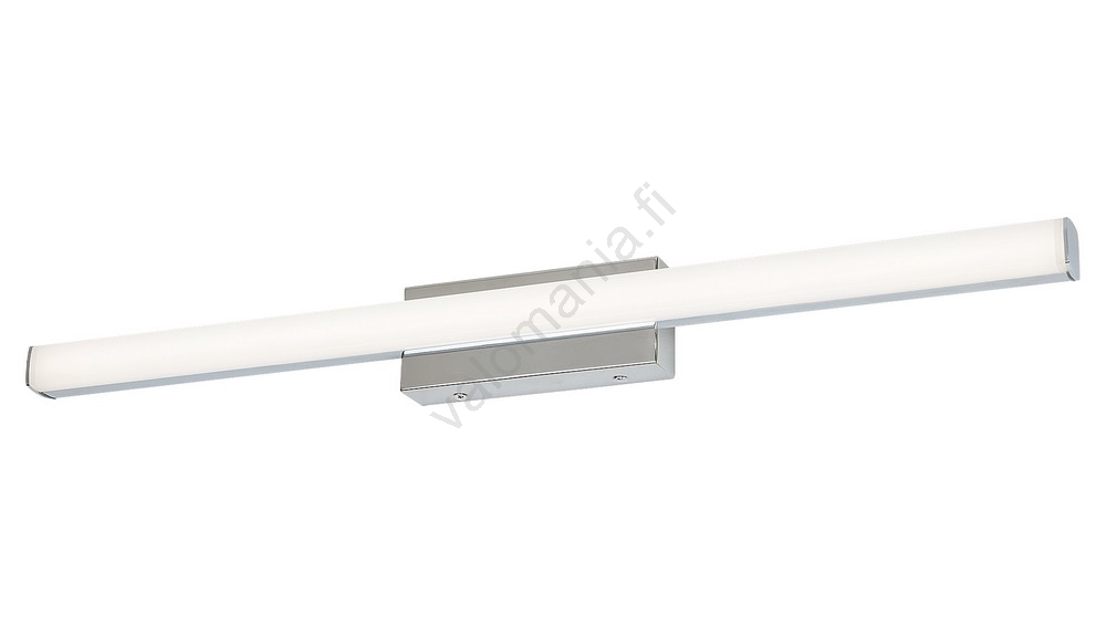 Bastian-seinävalaisin kylpyhuoneeseen on erinomainen lisä moderniin kylpyhuoneesi sisustukseen: asennettuna pesualtaan tai peilin yläpuolelle se säteilee luonnollista valkoista valoa ja luo puhtaan, modernin vaikutelman. Krominen Bastian-lamppu sisältää energiatehokkaan 13 W LED-valonlähteen, jonka valovirta on 1120 lumenia ja käyttöikä 20 000 tuntia. Valonlähteen värilämpötila on 4000 K. Metallinen ja muovinen seinävalaisin on IP44-luokiteltu, mikä takaa suojan enintään 1 mm kokoisia vieraita esineitä vastaan sekä roiskevettä vastaan kaikista suunnista. Valaisimen mitat ovat: pituus 630 mm, korkeus 75 mm, etäisyys seinästä 60 mm. Bastian-kylpyhuonevalaisin toimitetaan viiden vuoden takuulla.