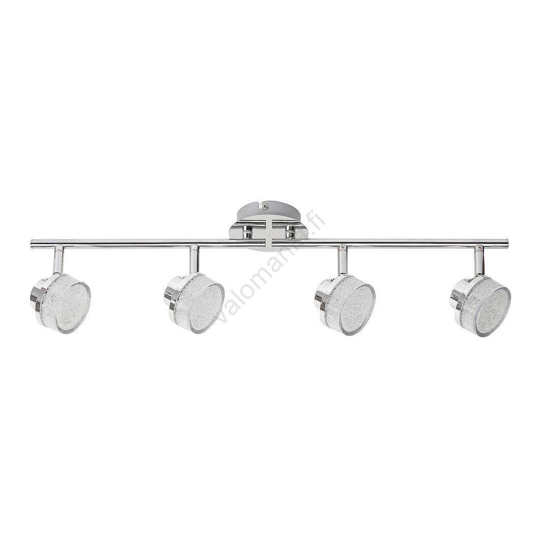 Nelivaloinen Padma-kohdevalaisin kromi- ja kristallivärisekoituksellaan on tyylikäs lisä moderniin olohuoneeseesi tai makuuhuoneeseesi. Kattoasennuksen metallirunkoa täydentävät mattamuoviset varjostimet, jotka antavat tälle mallille ainutlaatuisen ilmeen. Padmassa on neljä sisäänrakennettua energiatehokasta LED-valonlähdettä, jotka säteilevät lämpimän valkoista valoa värilämpötilaltaan 3000 K. Valonlähteiden energiankulutus on 20 W, valovirta 1600 lumenia ja käyttöikä 20 000 tuntia. Nelivaloisen Padma-kohdevalaisimen kokonaispituus on 600 mm. Tämä malli toimitetaan viiden vuoden takuulla.