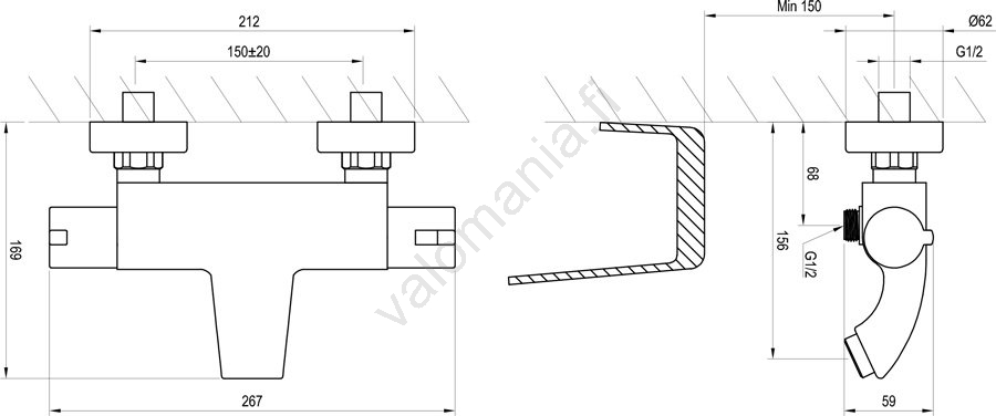 • Seinään asennettava termostaattinen ammehana, joka ylläpitää veden tasaista lämpötilaa ja takaa turvallisen sekä mukavan kylpyammeen täytön.