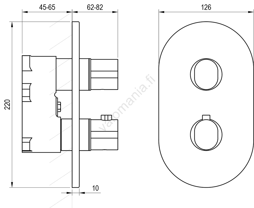 • Kaksilähtöinen rakenne vaihtokytkimellä mahdollistaa kahden ulostulon ohjauksen – esimerkiksi pääsuihkun ja käsisuihkun tai kylvyn täytön ja suihkun yhdistelmän.