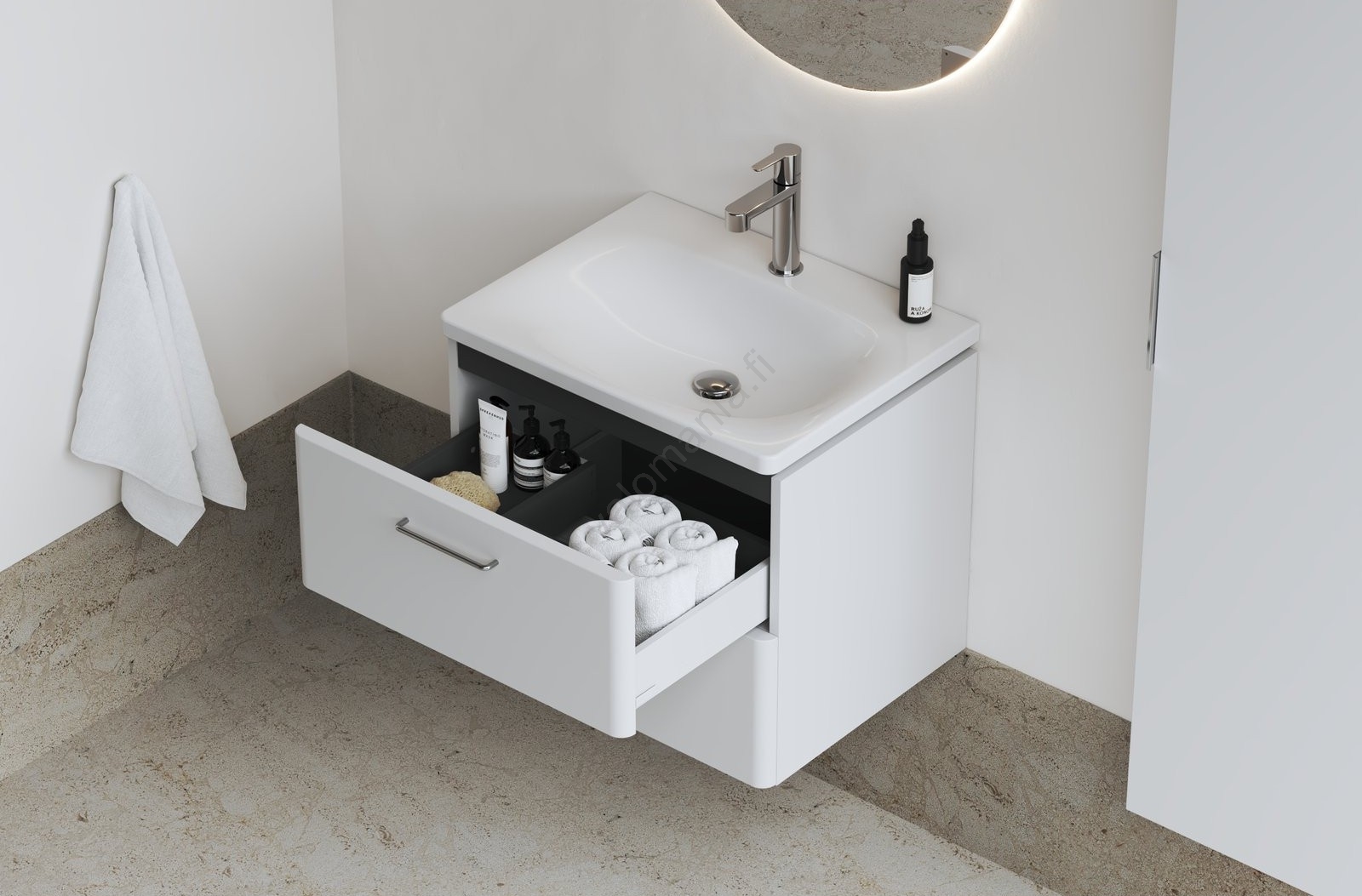 • Kalusteallas Balance, mitoiltaan 60 x 46,5 x 3 cm, on tarkoitettu upotettavaksi ripustettavan kaapin sisään.