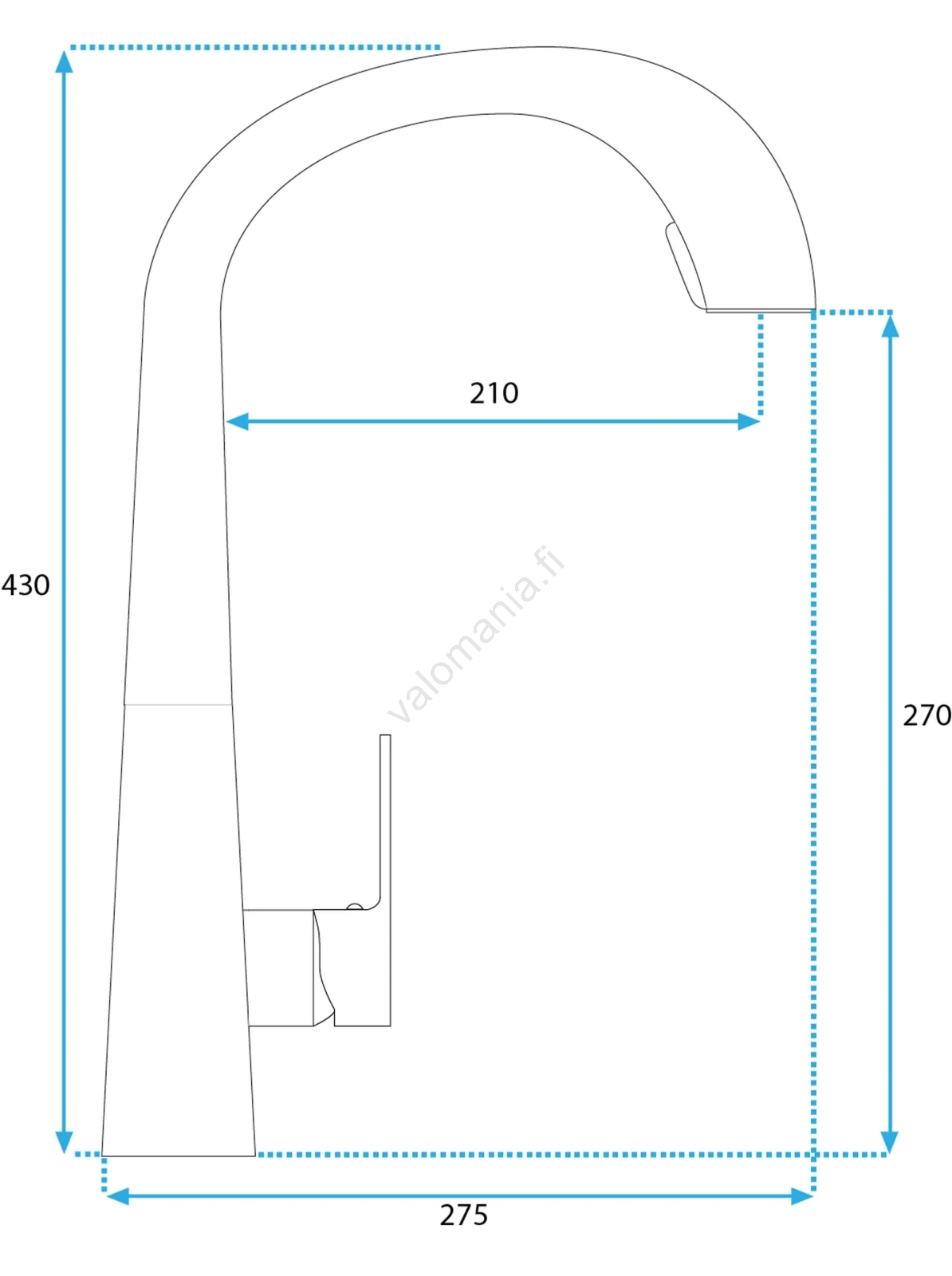 • Yhdenvivullinen keittiöhana korkealle vedenpaineelle, kääntyvällä juoksuputkella.