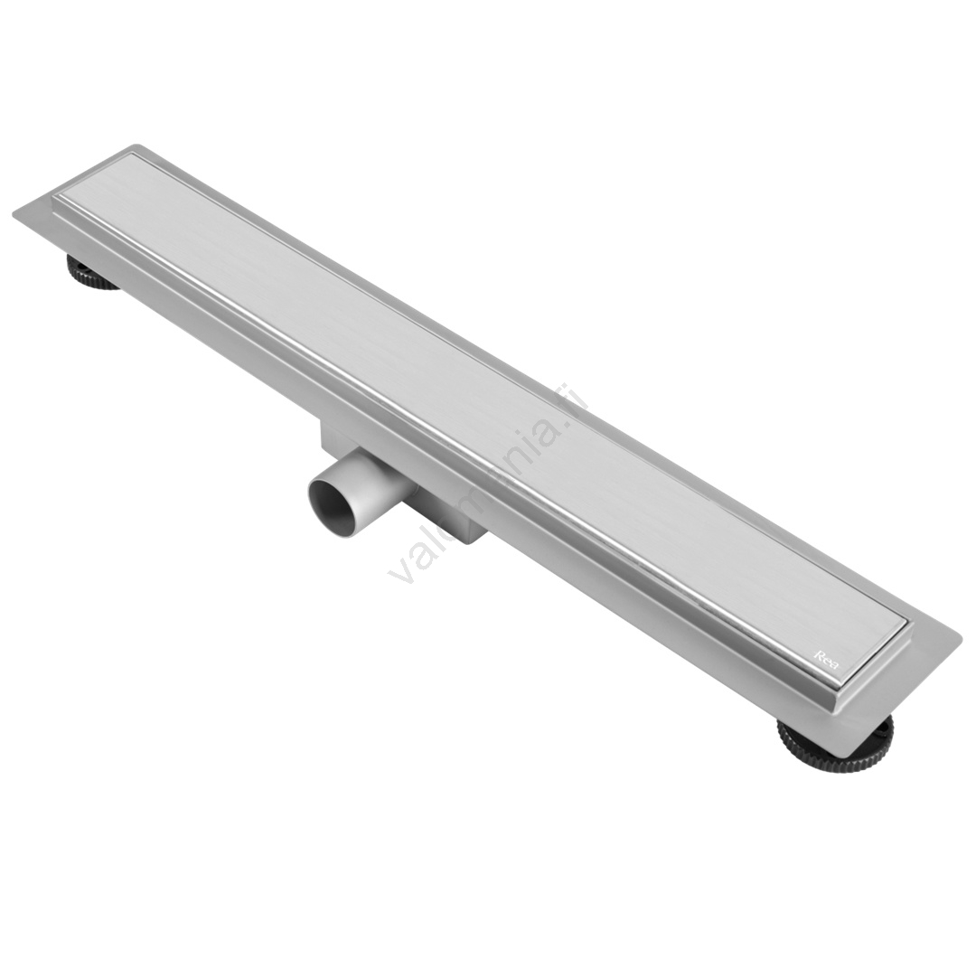 • 60 cm pitkä lineaarinen lattiakaivo ruostumattoman teräksen sävyssä.