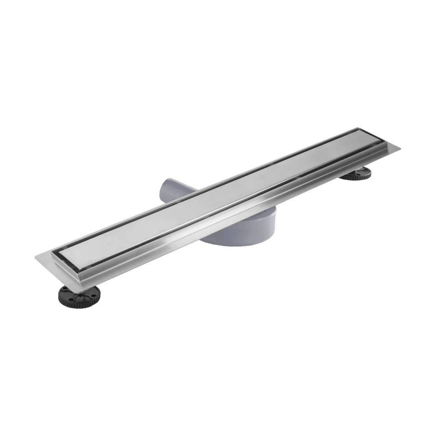 • 50 cm pituinen lineaarinen lattiakaivo harjatun teräksen viimeistelyssä.