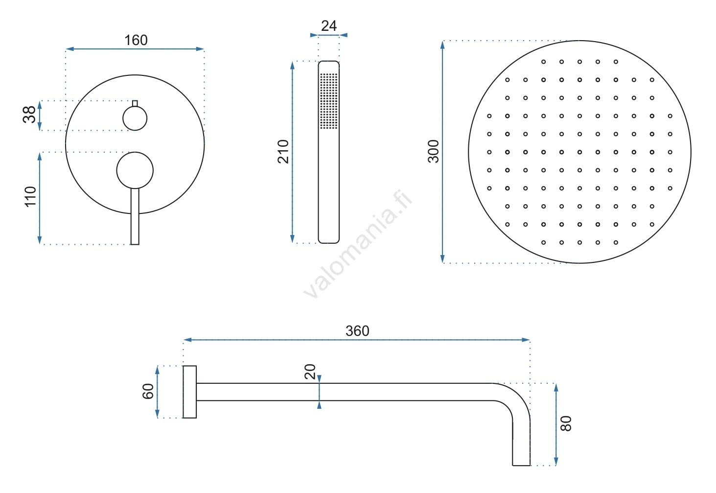 • Tämä suihkusarja seinän sisään asennettavalla hanalla on tyylikäs lisä jokaiseen kylpyhuoneeseen.