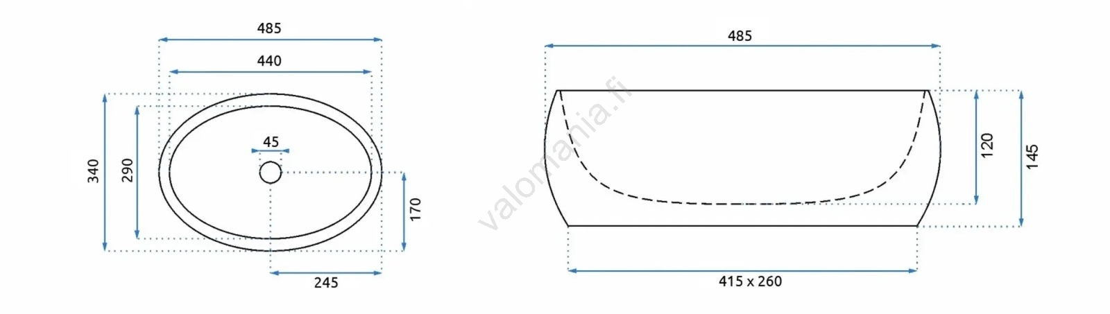 • Moderni ja tyylikäs pesuallas ilman ylivuotoreikää.