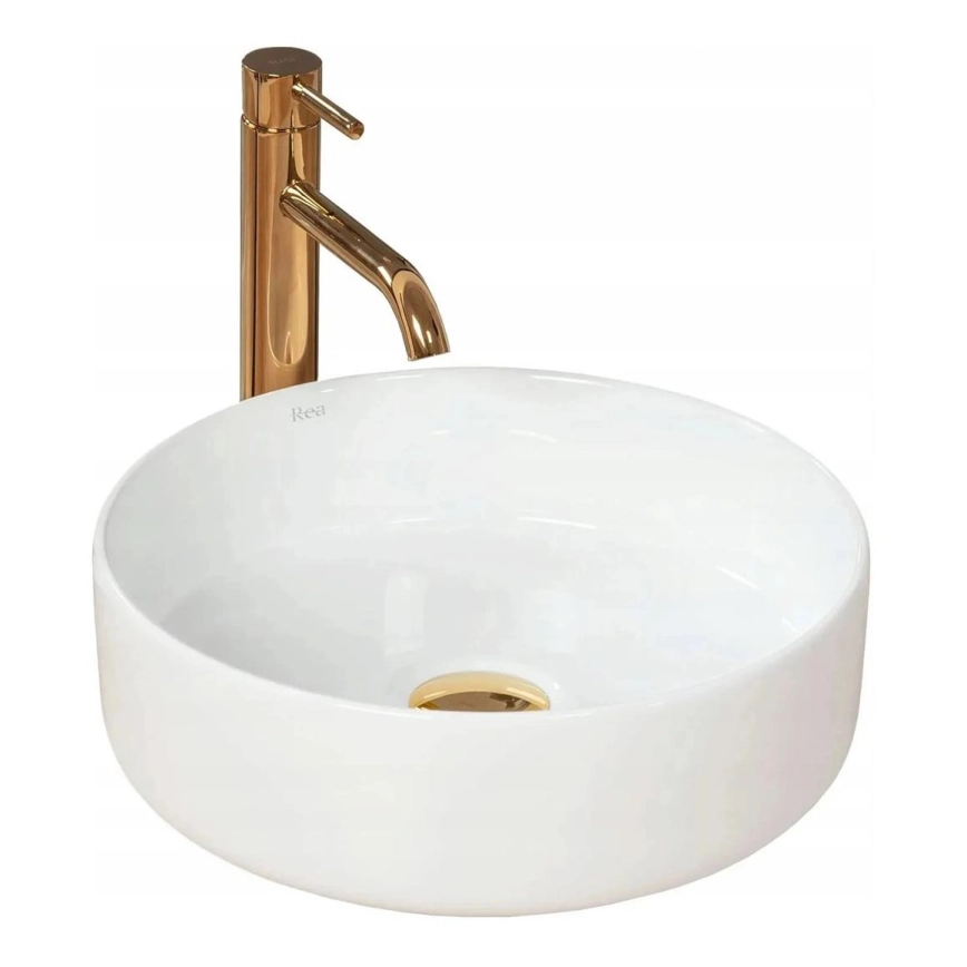 • REA-U6630 - SAMI pöytätason pesuallas Ø 36 cm keramiikka/valkoinen/harjattu kulta