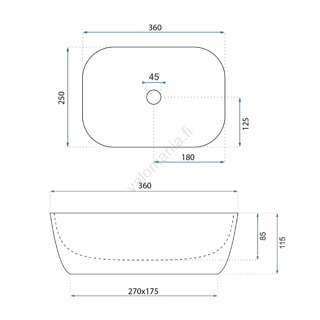 • Moderni ja tyylikäs pesuallas ilman ylivuotoa.