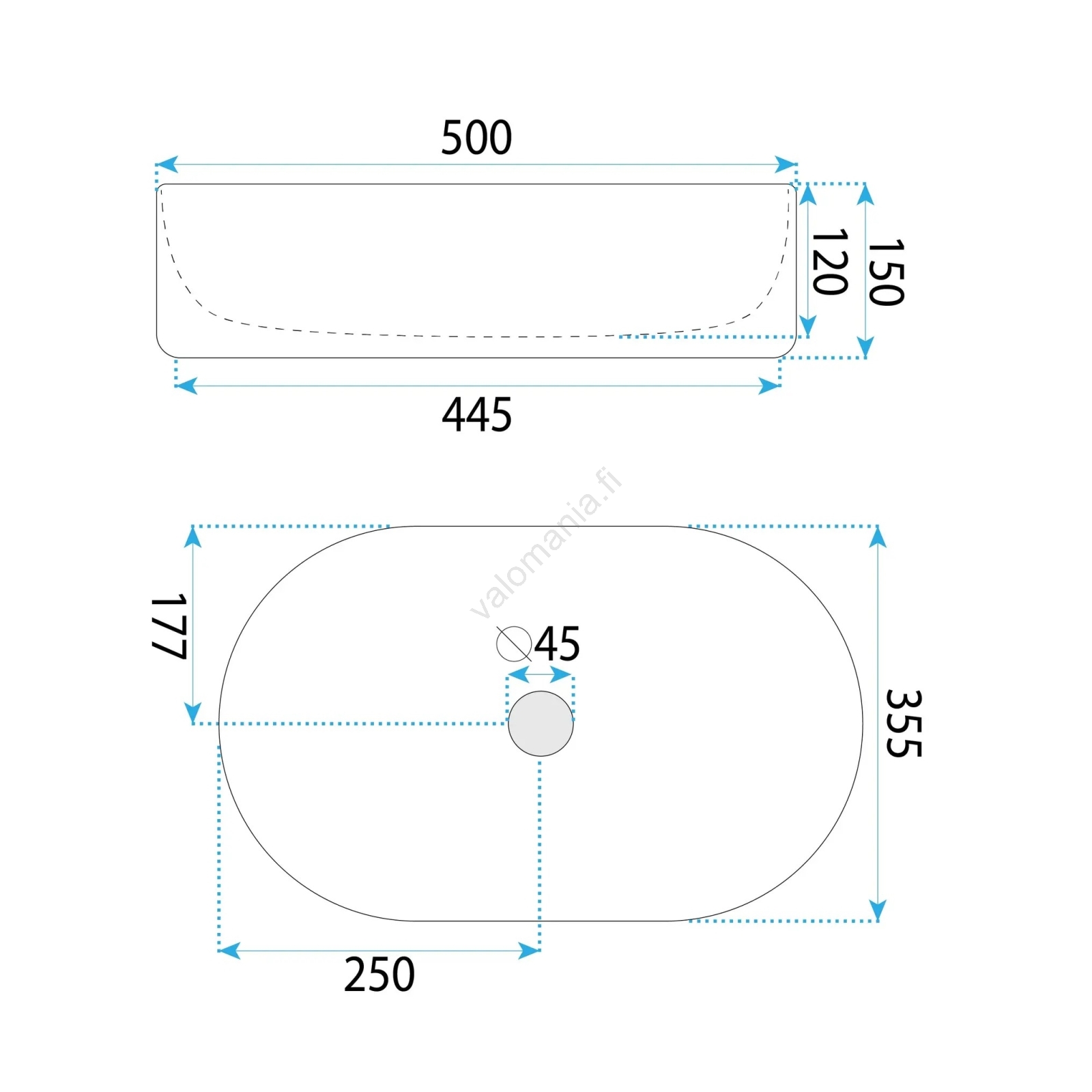 • Moderni ja tyylikäs pesuallas ilman ylivuotoa.