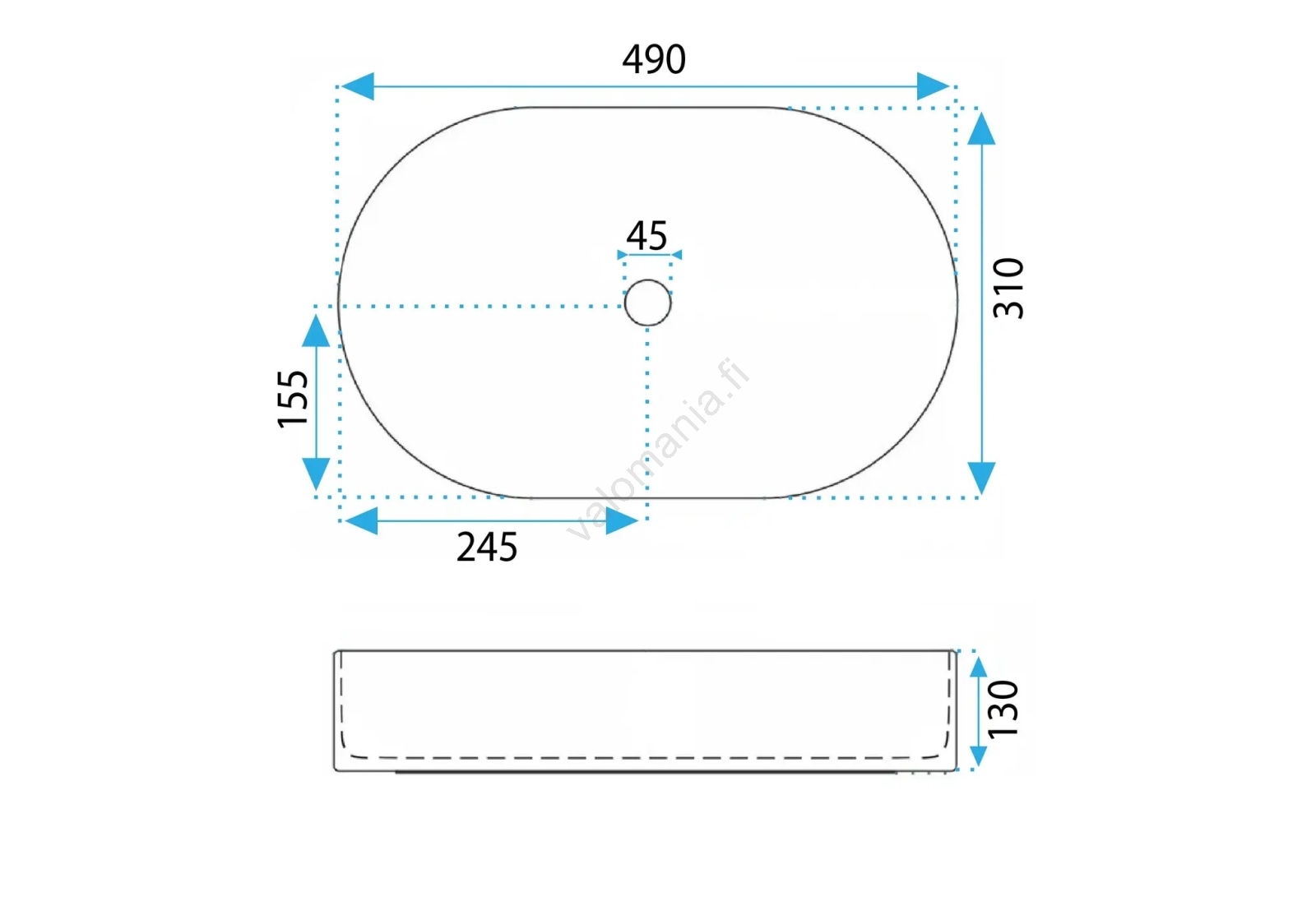 REA-U6375 - Tason päälle asennettava pesuallas VANDA 31x49 cm keraaminen/mattasininen | Valomania
