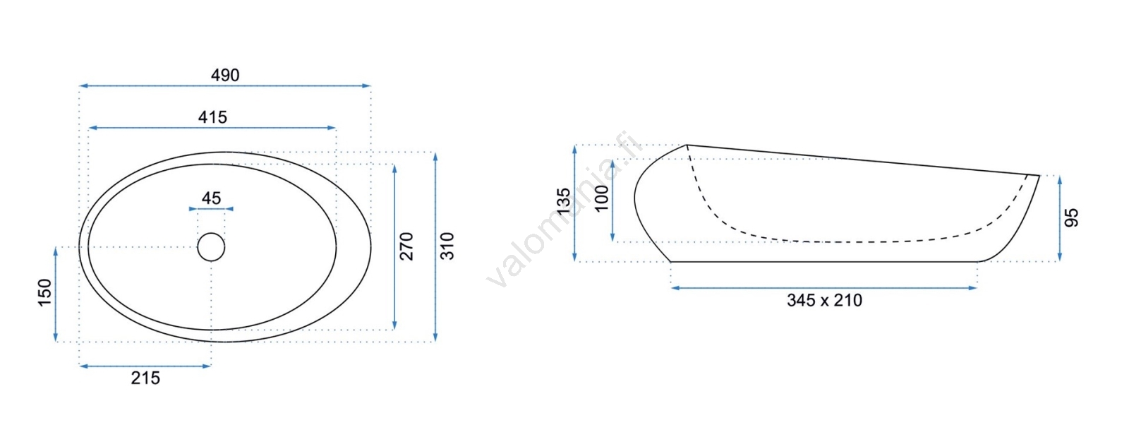 • Pesuallashana ja pohjaventtiili eivät kuulu toimitukseen.